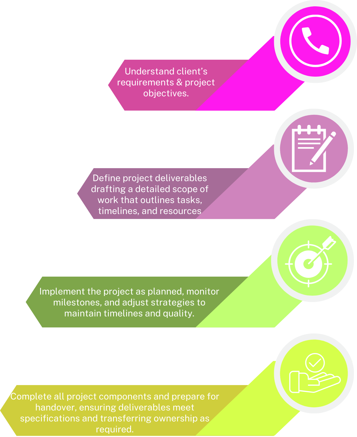 Each step in our process, from initial planning to final execution, is crucial for maintaining control and boosting efficiency. Our systematic approach ensures consistent, reliable results across all projects, highlighting our commitment to excellence and client satisfaction.